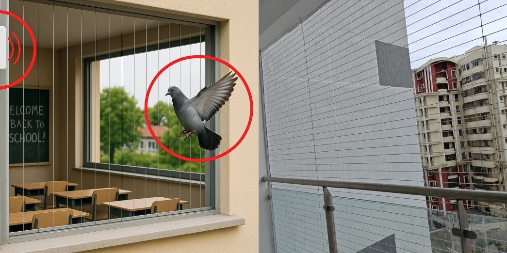 Invisible grills not only help control bird intrusion but also enhance the safety of your family, making them ideal for apartments, villas, offices, and commercial buildings.